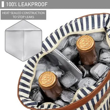 Tote your wine and keep it at the perfect temperature with our popular insulated wine tote. Our elegant Stripe Navy tote features a classic country look. Enjoy it outdoors at a picnic, park concert, or a dinner party!
